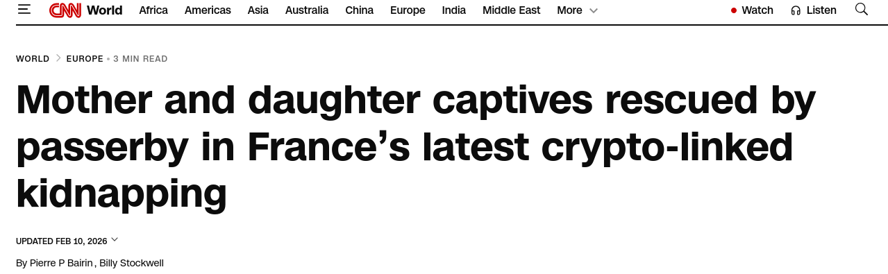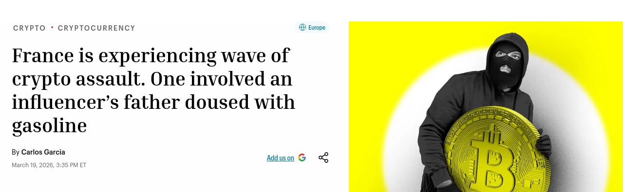 To understand why this law is so dangerous, you need to know what France has experienced since 2024. The country became the global epicenter of cryptocurrency-related kidnappings and violent robberies. What security experts call "wrench attacks," where criminals use physical force to steal crypto assets. And those are just a few from many more.